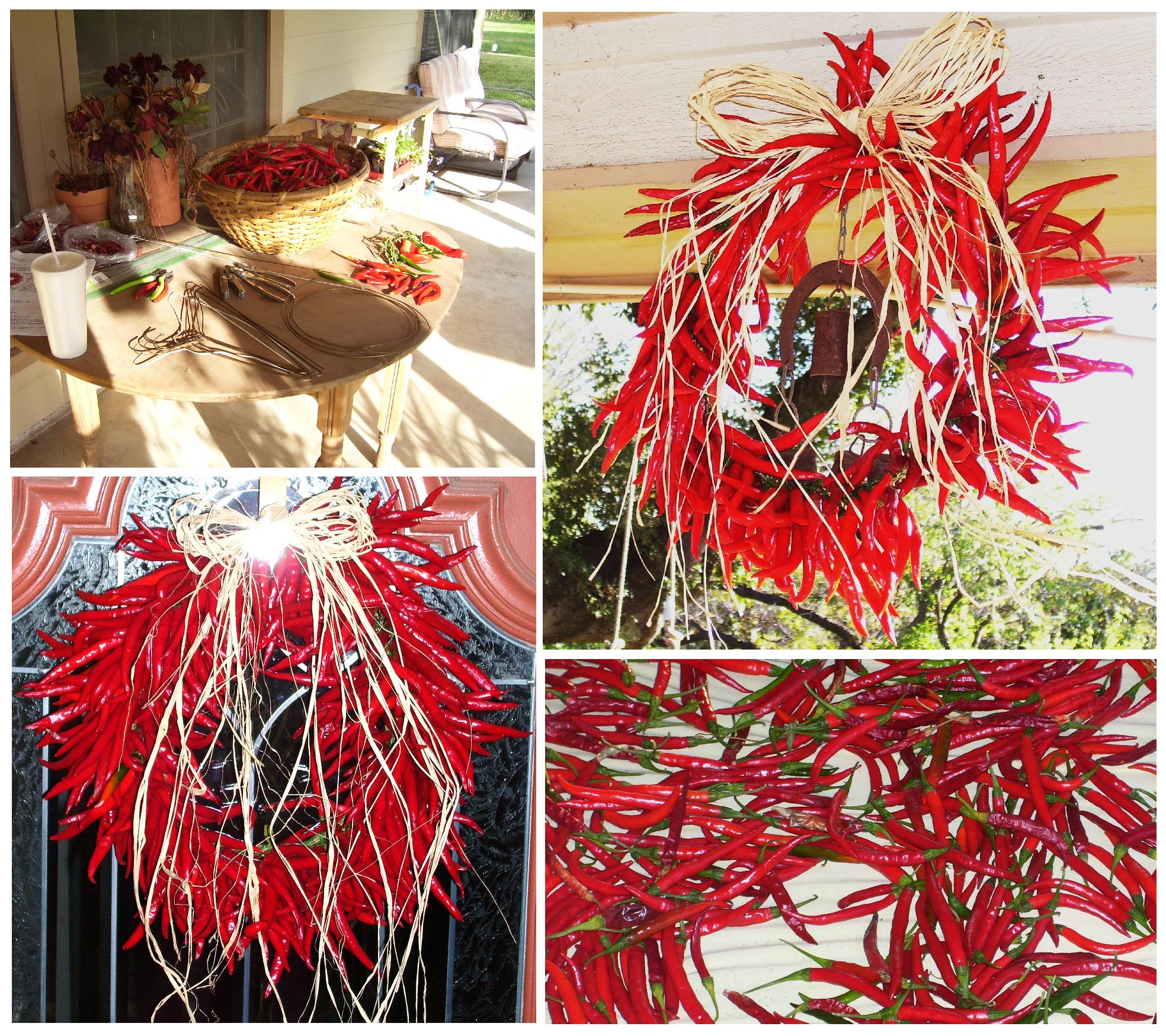 This was the first Texas Thanksgiving craft we did. I had planted an overabundance of cayenne and anahiem chilies in my garden and decided to make wreaths and ristras out of them.