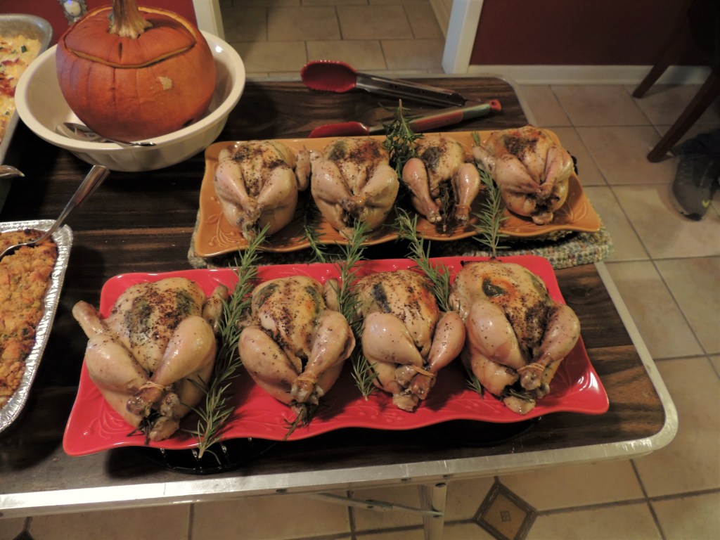 Now I was not a big fan of the turkey drumsticks. They might have be better if they had cooked longer to be more tender. They had a wonderful flavor and looked really pretty on a platter, but had a lot of cartilage and gristle that make them kind of difficult to eat. I don’t think I will do that again. BUT the SPICY DRY RUB JALAPENO STUFFED BIRD! OMG! Best Turkey I’ve ever made. Super juicy. Super Yummy. Definitely have to do that again. And the little Rock Cornish Game Hens too. So I will share both of those recipes with you…
