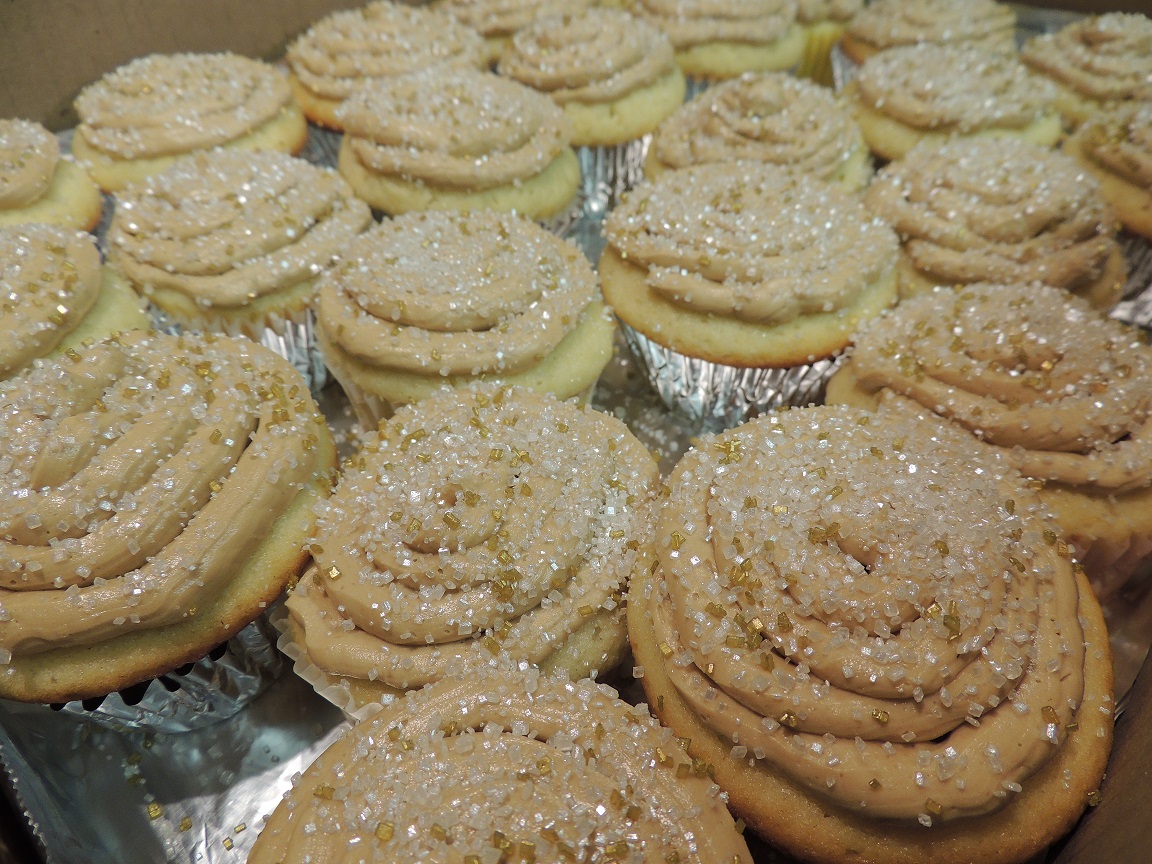I made the honey butter using a stick of real butter and added about 1/4 cup of honey and a tsp of cinnamon to it. And the cupcakes I made with a yellow cupcake batter and a brown sugar buttercream frosting that is out of this world. I found it when I went looking for a frosting I could make without powdered sugar. OMG! They were beyond delicious!!!!! In fact, this might be my favorite frosting of all time!!!!! You must try it! Once I frosted the cupcakes, I sprinkled them with sugar sprinkles. They turned out pretty!