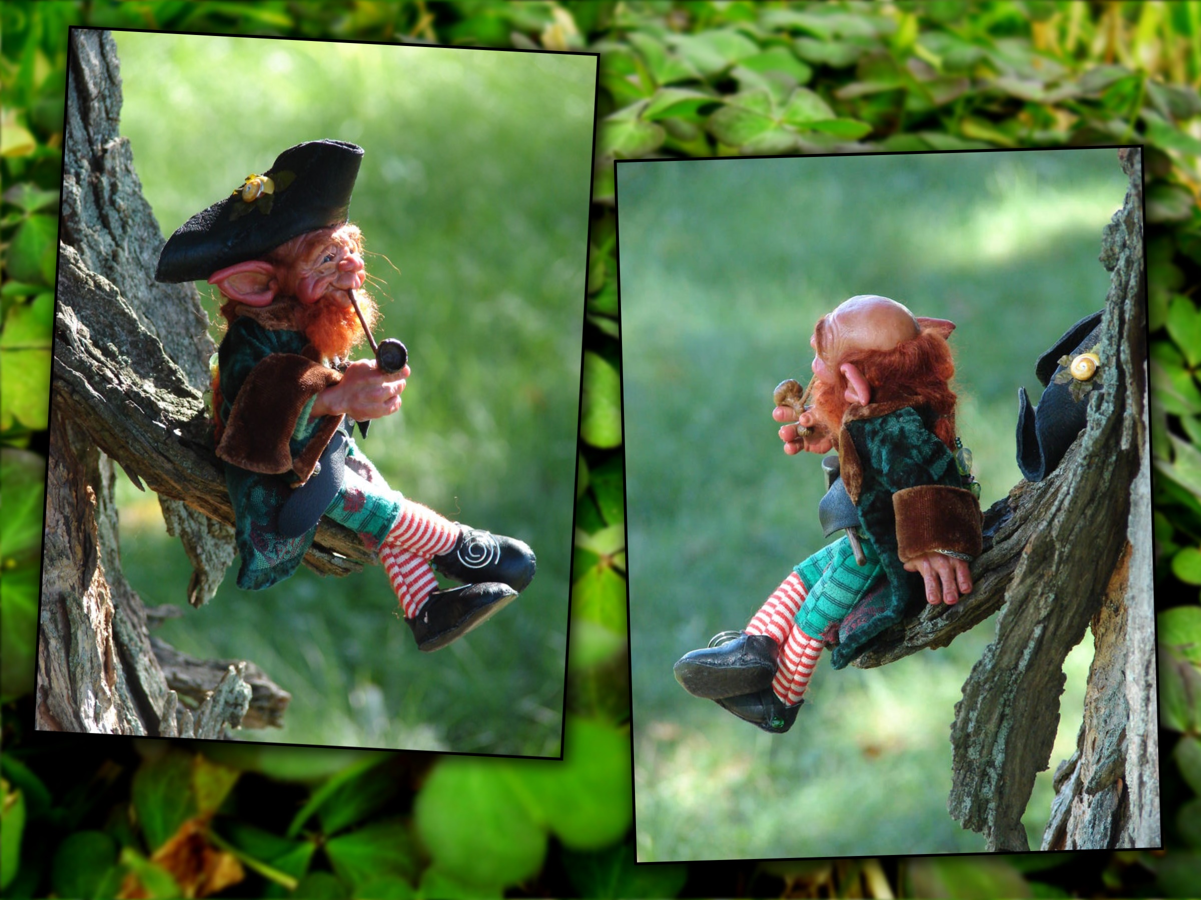 Since a watched trap never catches anything we went back in the house and granny Googled to see if anyone had ever gotten a picture of a Leprechaun, so we could see what they looked like. Alas, we were pleasantly surprised to find someone had. They sure must have been sneaky, and had a really really nice camera with a big telephoto lens to catch this little guy taking a siesta on a tree branch. Isn’t he cute? How lucky for us to get to see what one looks like!