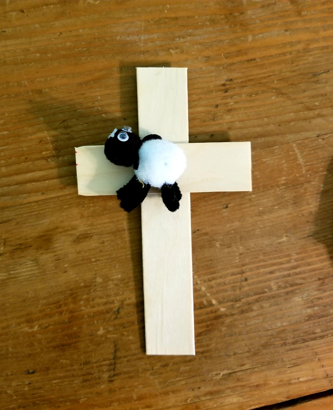 I gave each girl a little lamb, a nail, a Popsicle stick cross, and a hammer, and we nailed their lambs to their crosses. I explained that if that lamb was a real lamb the nail would make the lamb bleed.