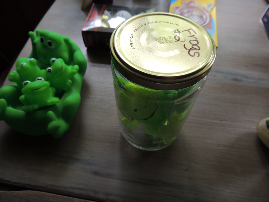 So God sent a second plague – Frogs: I had purchased some sticky frogs from Walmart and put them in a big jar. I handed the children the jar of frogs and let them take the frogs out and stick them to us and squish them and play with them for a bit. Then I said – “Pharaoh, Pharaoh, will you let my people go!” but Pharaoh said (and I pointed to the children who said), “NO, NO, NO!!!”
