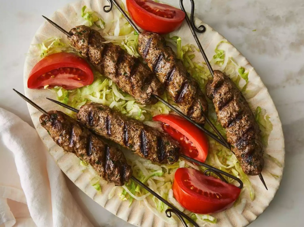 These koft a kebabs are made with ground lamb that’s seasoned with spices, then molded and cooked on the grill. They are very good!