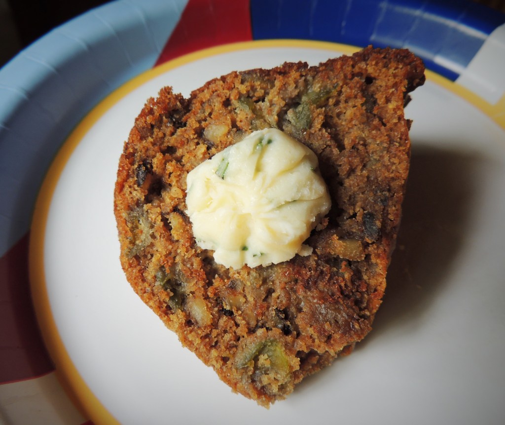 Bake for approximately 40 minutes.  Check for doneness – insert a toothpick and if it comes out clean it’s done.  If not, let bake another 5 or so minutes.  Remove from oven, cool slightly, invert bread onto wire cooling rack.  Allow to cool completely.  Slice, and serve with Rosemary honey butter.