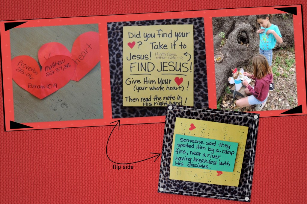 Will you give your hearts to Jesus, your whole hearts, I asked? Then I handed them a note. On the back was a clue where to look for Jesus.