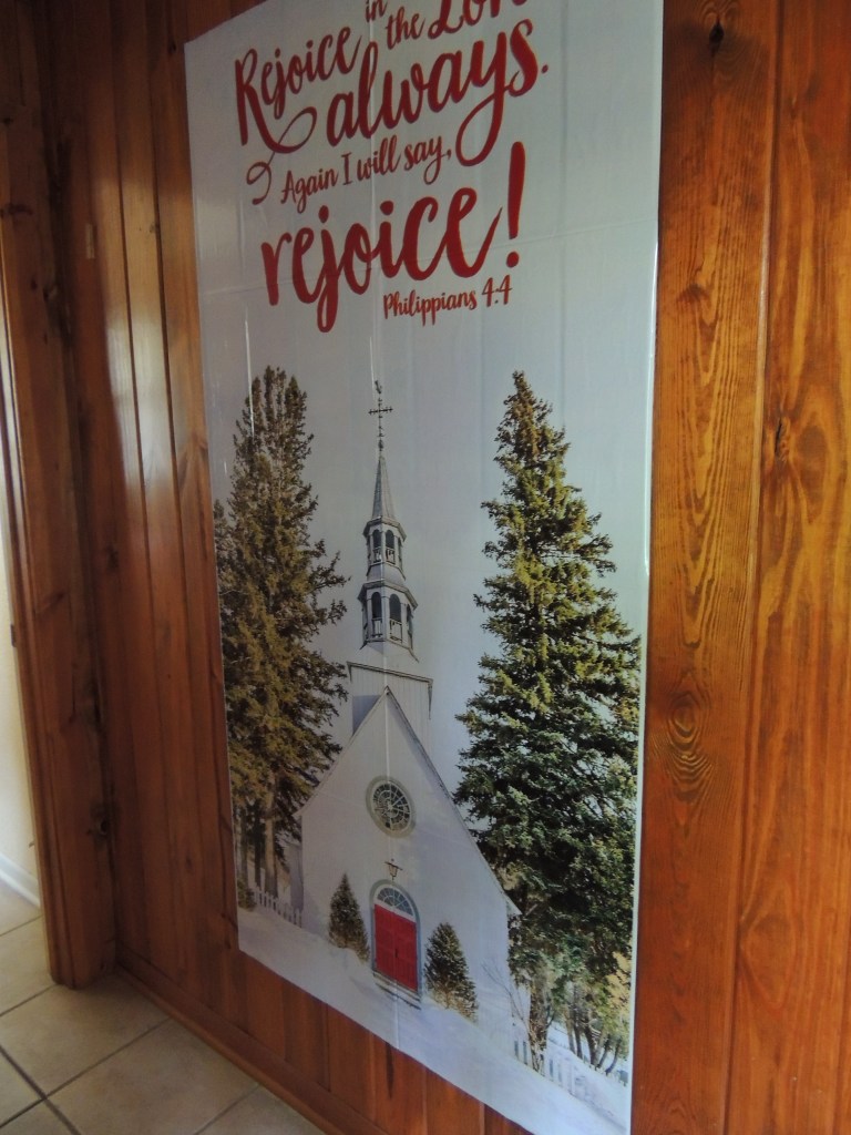 • I hung my church wall cling near my back door, where our Easter Egg Hunt would begin. I placed the kids’ Easter buckets in front of the “church” so they would take notice of it.