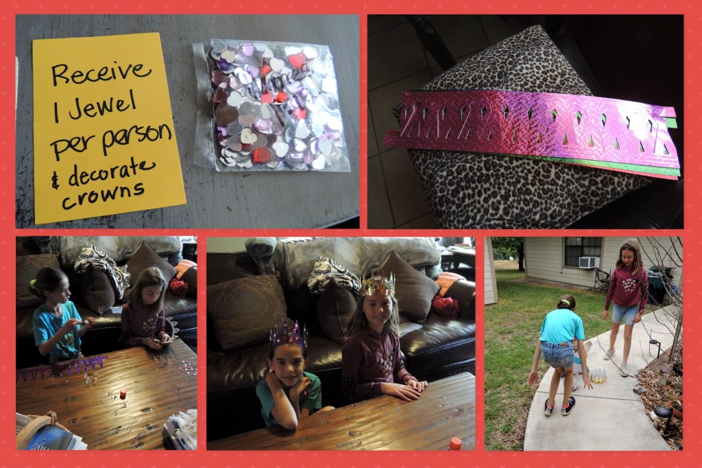 I told the girls that each one could take one jewel (from the bag of jewels) for each person they brought to Jesus, helped, and brought to church. So they counted out their jewels, and as they did I got out crowns for them and let them pick which color they wanted, and told them to use the jewels to decorate their crowns. So they sat down at the coffee table and stuck their jewels to their crowns while I read 1 Corinthians 3:11-15.