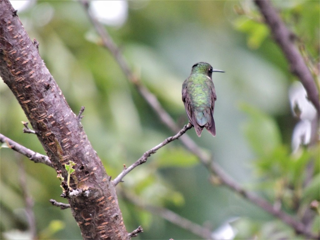 I saw my first hummingbird this morning. She was little and green and so delicate looking. She glided ever so wistfully on the warm dewy breezes with the skill and elegance of a ballerina. She came right up to the rain spattered pane of glass where I was looking out. She’d caught me in my jammies and sitting at the table, still groggy from sleep, holding my first cup of freshly brewed coffee in front of my face. My hands wrapped around the handle on one side and the smooth side on the other. I’d held it to my face just to let the steam rise up and tickle my nostrils with its tantalizing aroma. I was just about to take a sip when this little buzzing beauty stopped by.