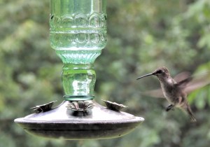 With that chore accomplished, I went to get dressed, made a list for the grocery shopping, and ran out the door before the heat of the day. As I drove down the street I happened to notice a banner hanging outside of a church. VBS it said, and the theme and the dates were listed. Wow, that’s right, summer break from school was right around the corner, wasn’t it! The town was soon to be inundated with restless little people with nothing to do. It got me thinking how much those VBS banners, tied to t-posts on the church lawns, were a lot like my hummingbird feeders. If they hang them, kids will come!!!