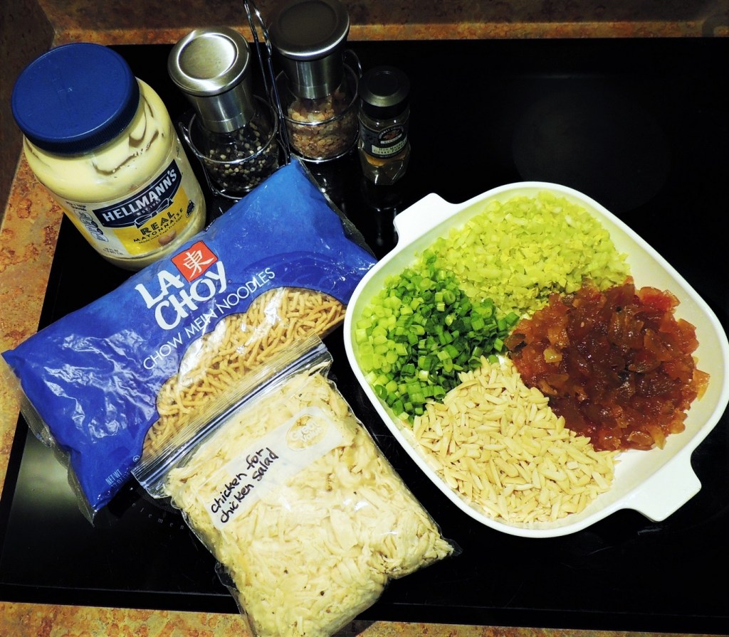 Toss turkey/chicken with the next 4 ingredients until well incorporated.  Mix the mayo, lemon juice, salt, pepper, and curry powder together and pour over chicken. Mix well. Add more mayo if a creamier texture is desired.  Add more salt, pepper, curry powder – if more is desired.  Cover tightly and keep refrigerated until ready to serve.  Stir in chow mein noodles just before serving.  Great dish to bring to a church pot luck, Bowling pot luck, Bunco night, cards, dominoes, or other game night get-togethers.  If you are a grandma and live in the same town as your kids and grandkids, take a batch over to them to be a blessing after a long day at work. Can be made up to 12 hours before serving. Add the chow mein noodles just before serving.