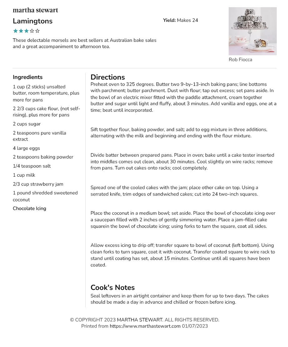 – – RECIPES – –