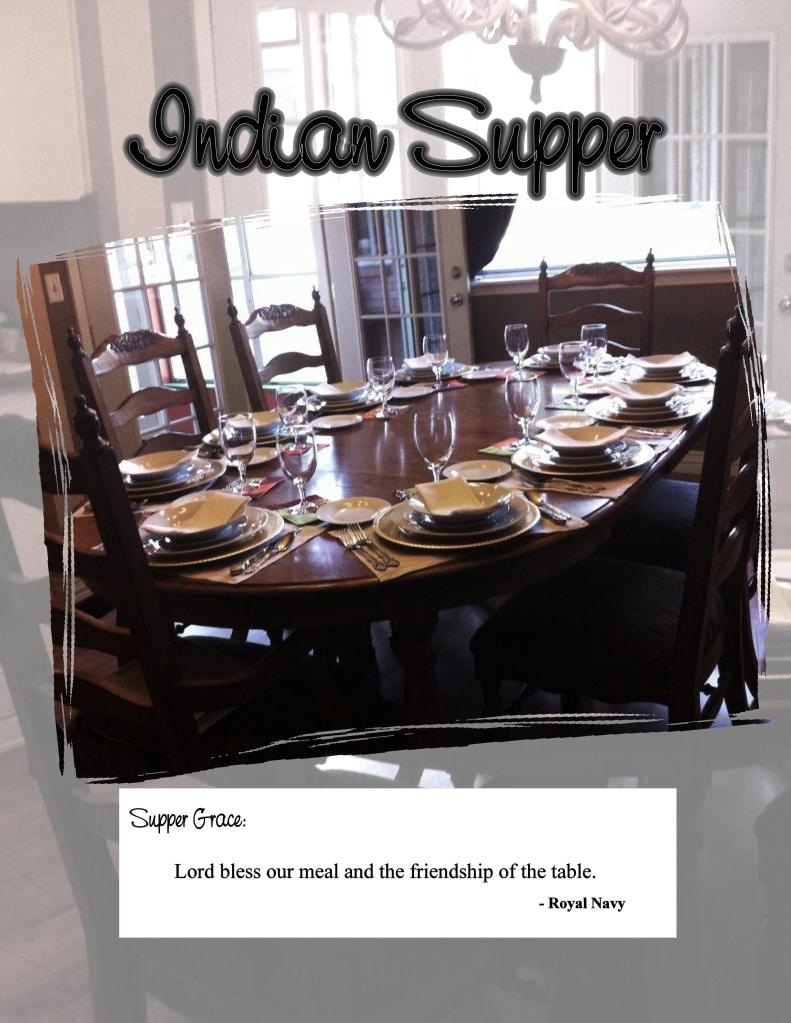 The following is the Indian soiree I ended up putting together. I cannot remember if I did this for my Yum Yum’s Cooking Club or not? That was another fun outlet for all the theme meals I wanted to try. Anyway, I hope you all find something that you can use out of all these words and pictures. God’s bessings on you!!!!